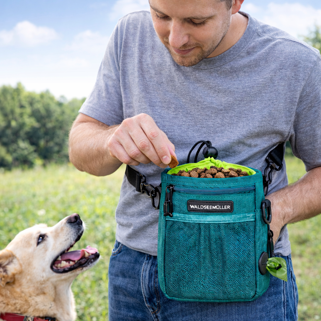 כיס גדול לאחסון אוכל, חטיפים, צעצועים, וקיפול שקיות לכלוך (poop bags). פתרון מושלם להליכות וטיולים עם הכלב!
