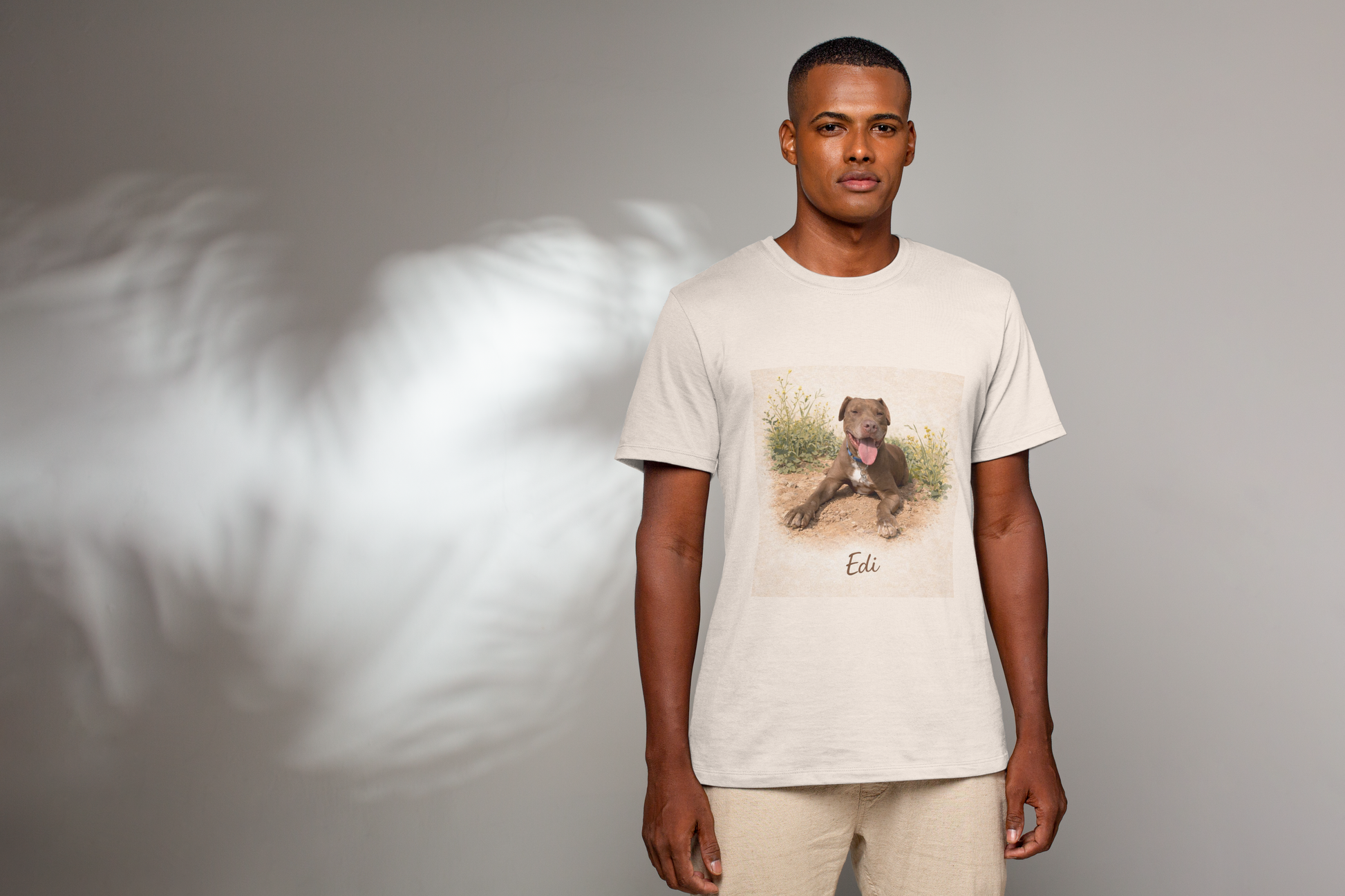 חולצת טי ייחודית עם הדפס צבעוני ושמח , בעיצוב שמכניס אור, חיוך ואהבה לכל יום. מתאימה לאוהבי כלבים, חיות וטבע – ולכל מי שרוצה ללבוש משהו עם אופי ולב